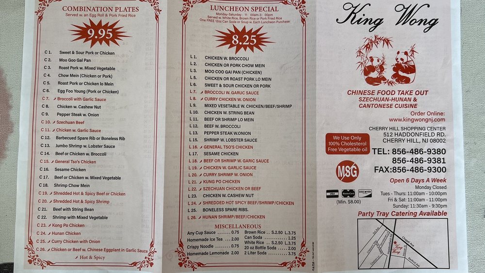 Introducing King Wong, a hidden gem in Cherry Hill, NJ, specializing in delightful Chinese seafood dishes. With a commitment to quality and flavor, King Wong offers an extensive menu, including delectable options like Jumbo Shrimp with Black Bean Sauce and Roasted Pork Fried Rice—each dish bursting with authentic taste.